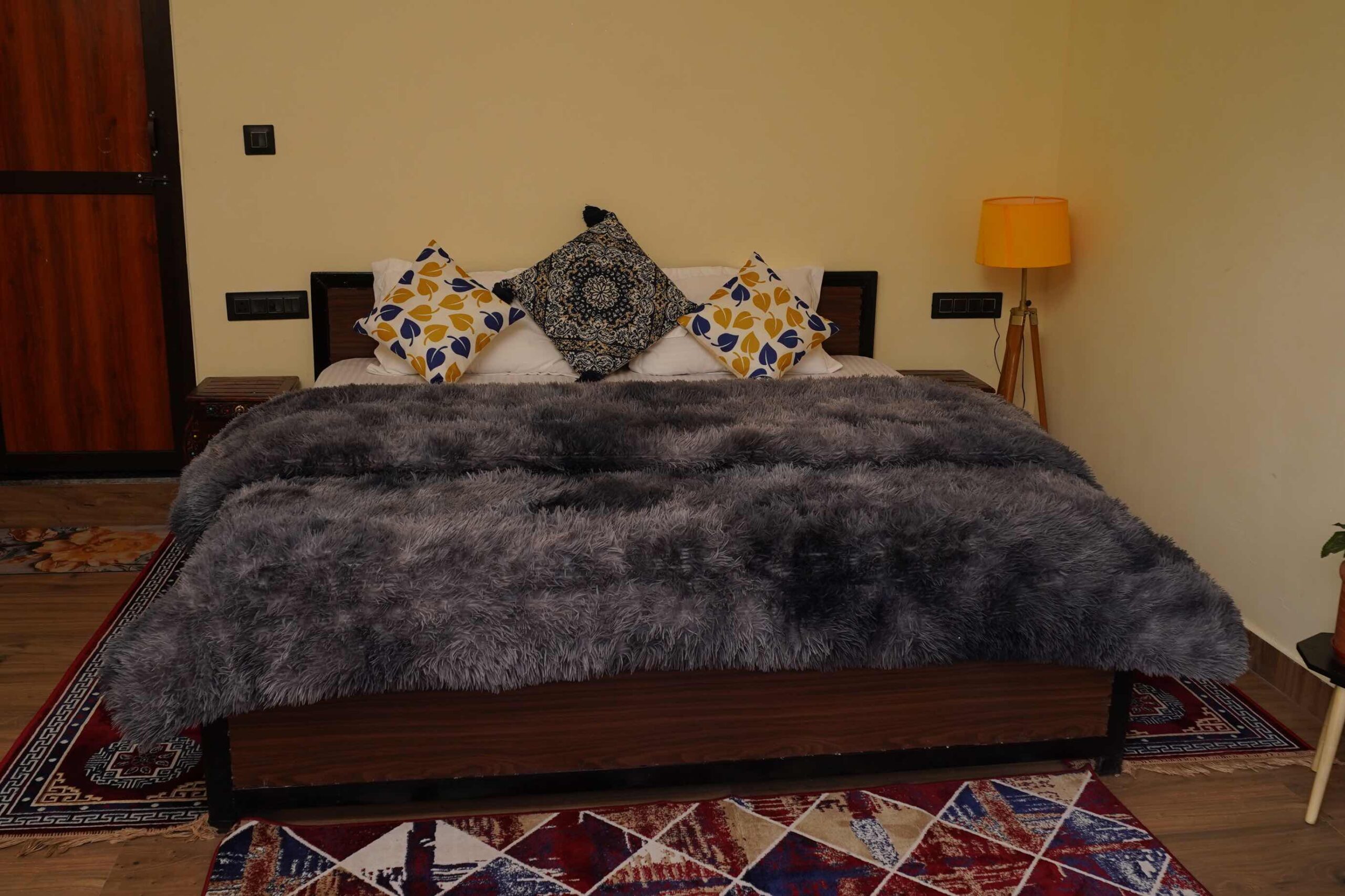 Serene river view suite with the soothing sound of flowing water. Features a private balcony overlooking the glacial stream, perfect for morning meditation and evening relaxation.
